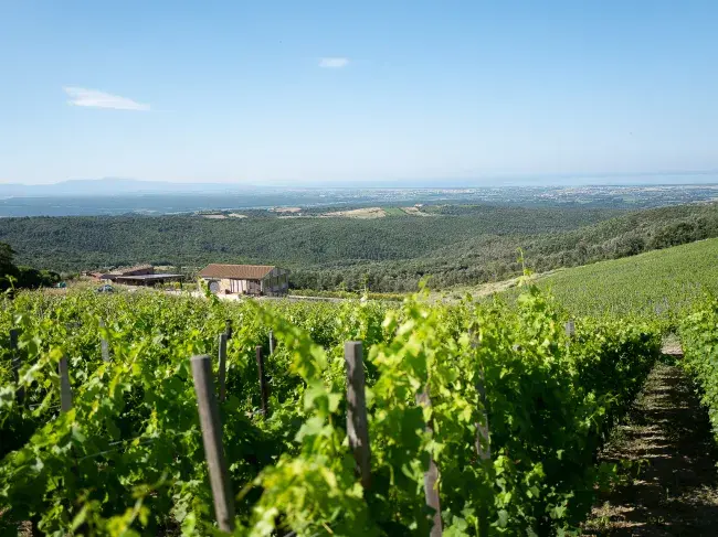 DueMani is a boutique winery owned by Elena Celli & Luca D'Attoma. Located in the tiny town of Riparbella, high along the Tuscan coastline above Bolgheri. The geography is rough and difficult with clay and large stones throughout the steep vineyards. Through their great effort and determination, they have farmed Biodynamically since the very beginning in 2001.  This philosophy of respecting and caring for the land, vines, and environment are practiced by all workers and participants at Duemani and is clearly evident in the exquisite wines they produce.