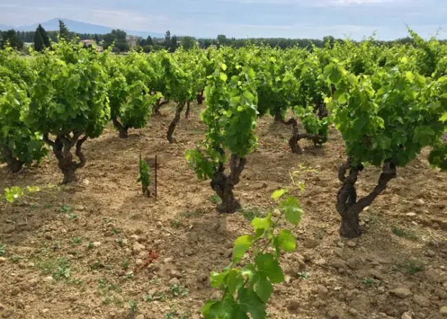 On the Châteauneuf du Pape appellation, the Domaine du Père Caboche vineyard is covered with rolled pebbles on 17 hectares, with the greatest density on the famous soil of La Crau. They contribute to the density and fullness of our wines. On this sea of pebbles, the vineyard still offers different products, thanks to the different layers in the underground. The clay-calcareous soil helps the vines with their water retaining properties, which has become more and more important with climatic changes. Thus the wines appear to be softer in the mouth. Sand is also present in proportions changing from one soil to another, bringing notes of elegance and finesse.