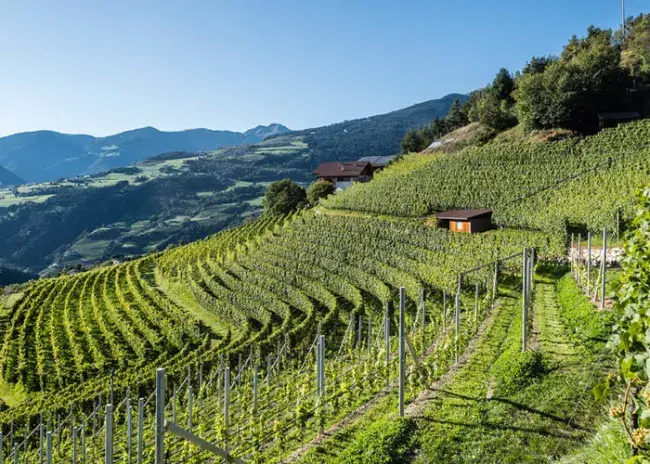 The Isarco Valley offers one of the most beautiful natural landscapes in Alto Adige, with its majestic mountains dotted by alpine farmhouses, castles, monasteries, villages, magnificent chestnut groves and, above all, terraced vineyards enclosed within neat low stone walls. The people are accustomed to working the predominantly steep mountain slopes, tending their vineyards at heights of up to 950m. It is primarily, this variety that commands respect and keeps alive the valley people’s attachment to their unique natural surroundings.
